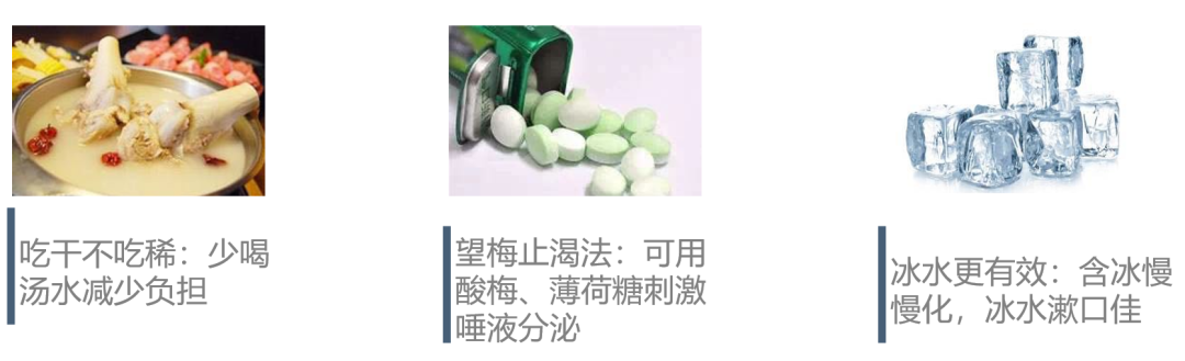 ③含一小片檸檬或嚼一小塊口香糖可以促進(jìn)唾液產(chǎn)生也有助于緩解口渴。