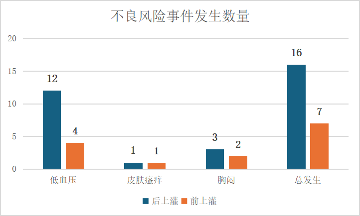 有研究結果顯示,后上灌會增加不良事件發生率(見圖3),作者猜測可能是透析治療2h后血容量減少,再行HP治療時由于血容量相對較低,可能導致濾器凝血,易誘發機體低血壓,增加不良事件的發生。因此,從患者治療安全角度考慮,應該選擇前上灌。