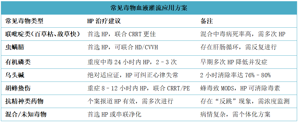3、常見毒物血液灌流應用